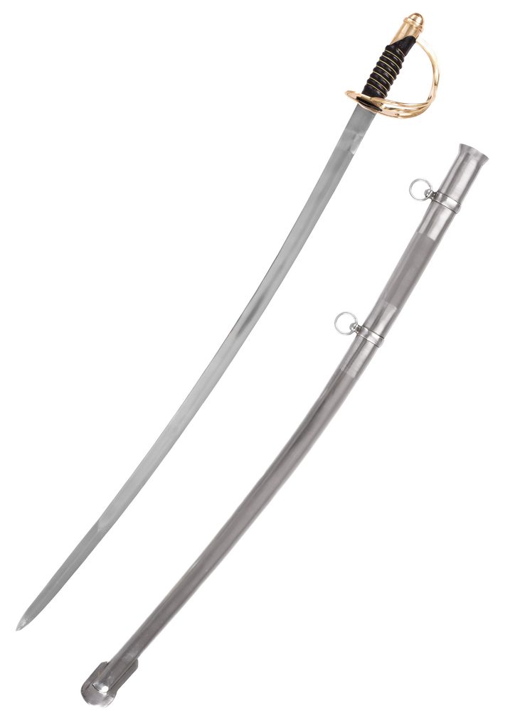 This replica is based on the historic U.S. Cavalry Sabre Model 1860, which was one of the most widely used cold weapons of the American cavalry in the second half of the 19th century. This type of sabre was the standard armament of the cavalry during the American Civil War and remained in use for many years afterwards. The weapon's design was primarily for slashing blows delivered from horseback, but the curved blade also allowed for effective stabbing techniques.
