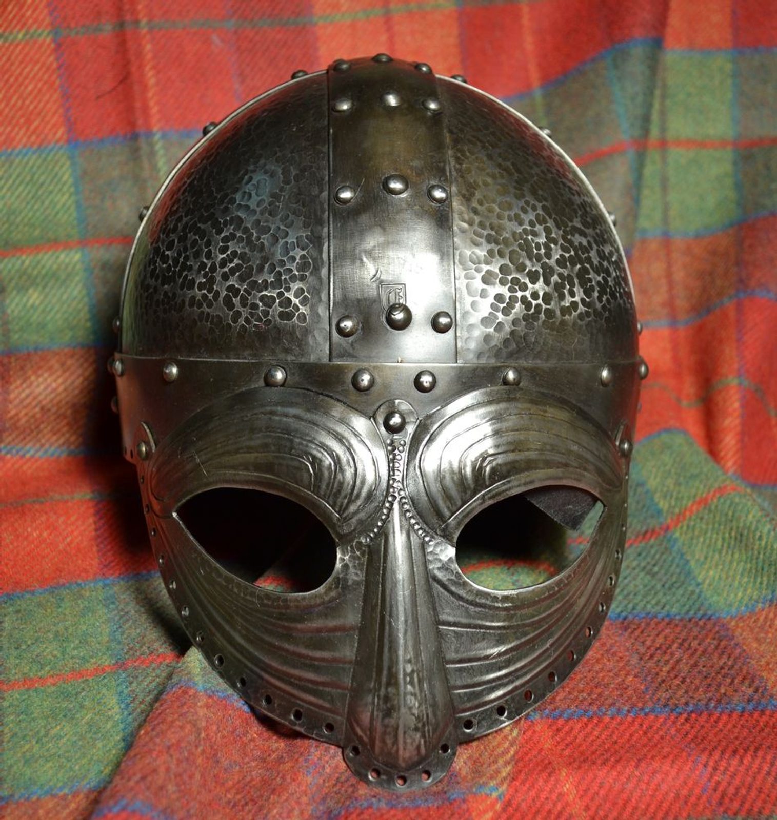 Hand made viking helmet for re-enactors with patina.