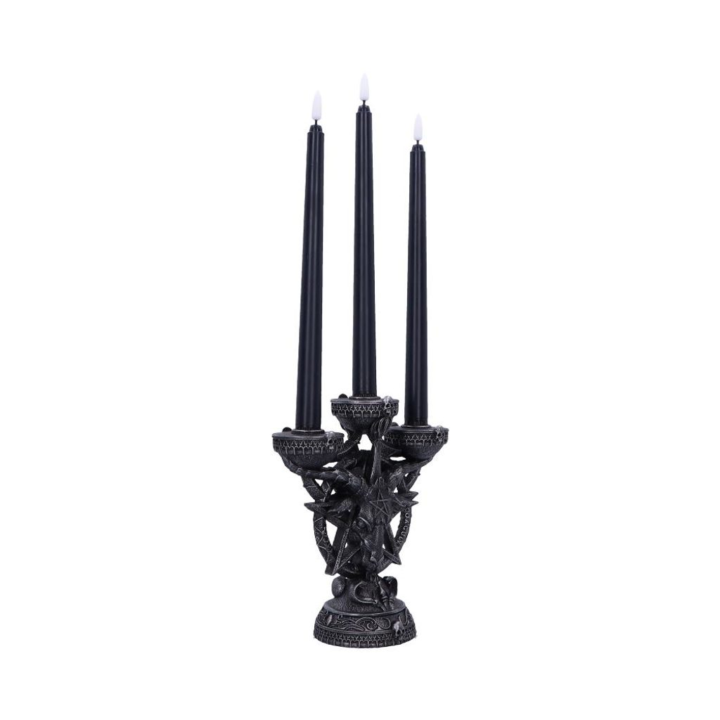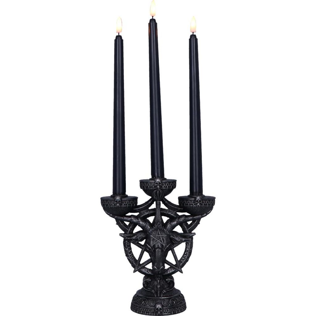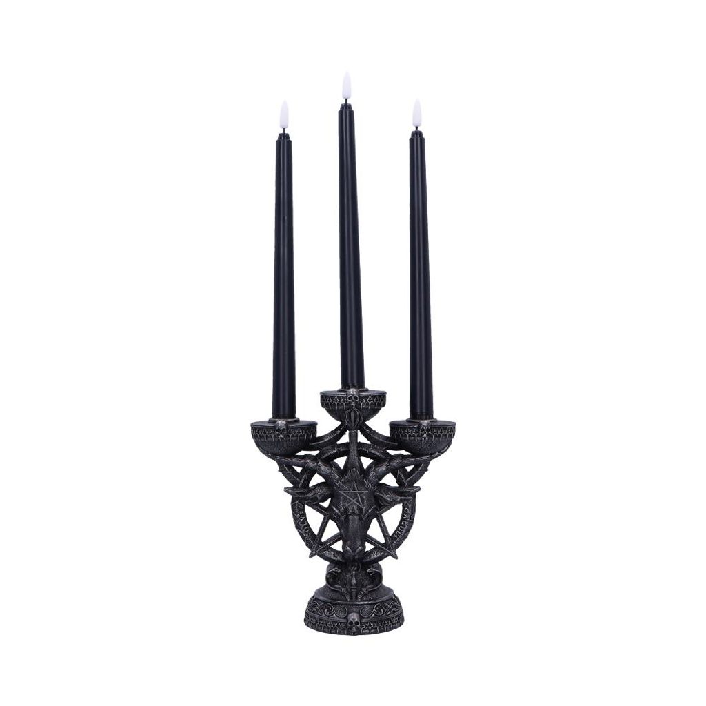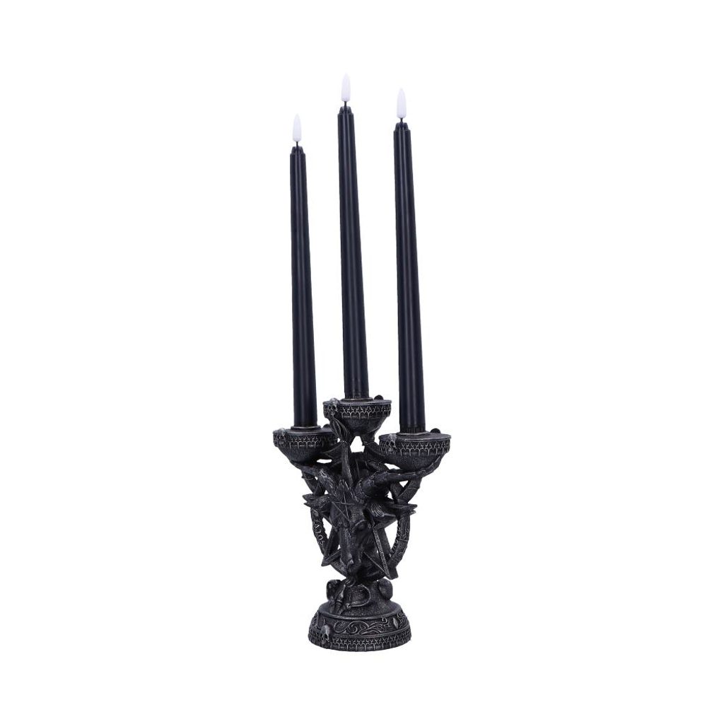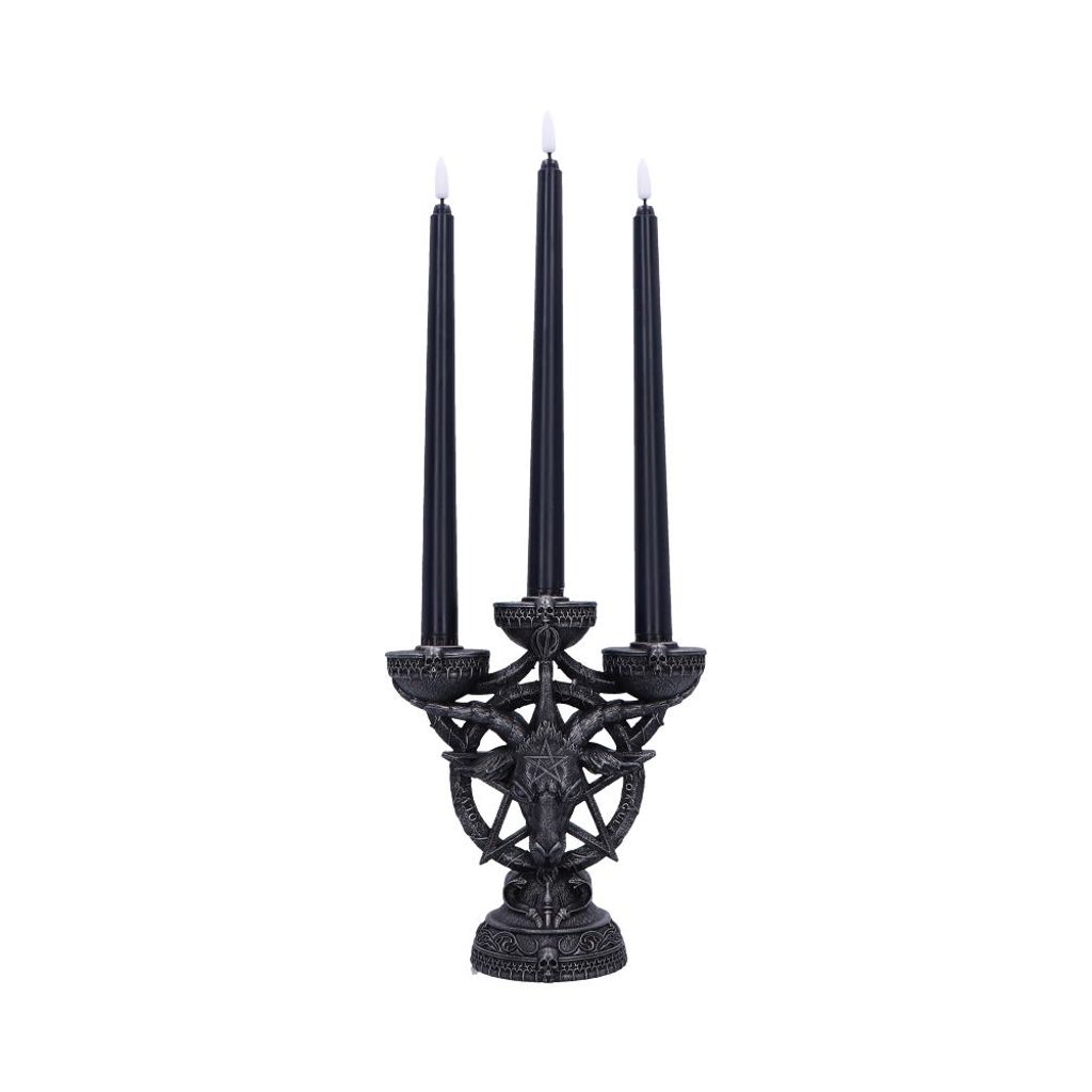 An impressive candle holder inspired by the mystical symbol of Baphomet. Dark elegance and detailed workmanship create a unique piece that immediately catches the eye.