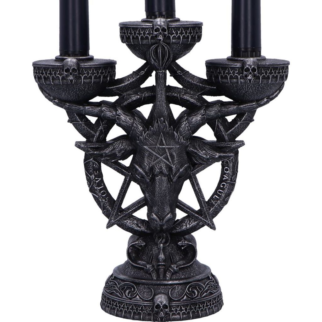 The candlestick is decorated with ornaments and a stylized image of Baphomet, making it not only a practical object, but also a decoration with a strong symbolism.