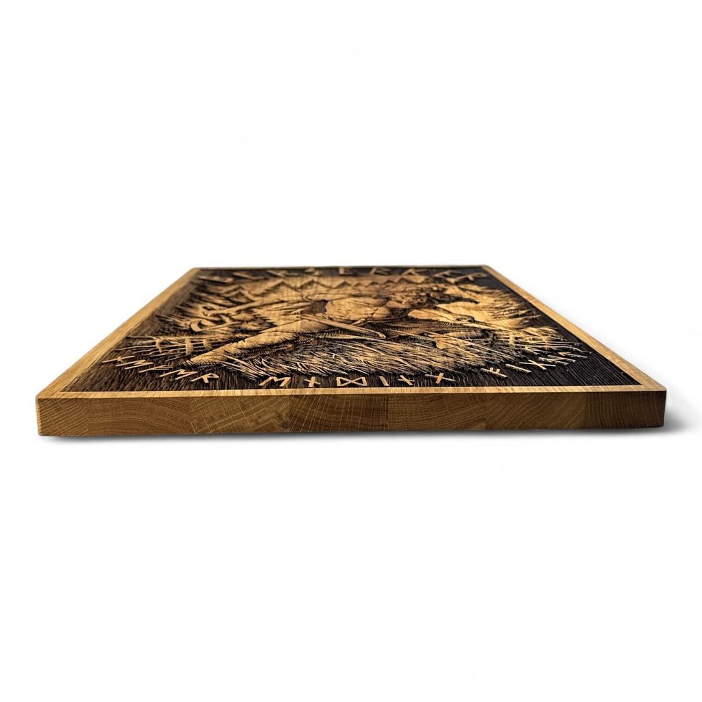 The paintings are fired in oak grout. The oak leaves a beautiful texture due to the different hardness of the winter and summer rings.