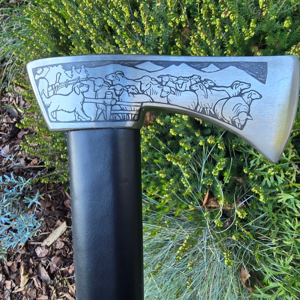 FLORA VALASKA traditional forged Carpathian Axe - etched Carpathian axe - Wallachian, etched