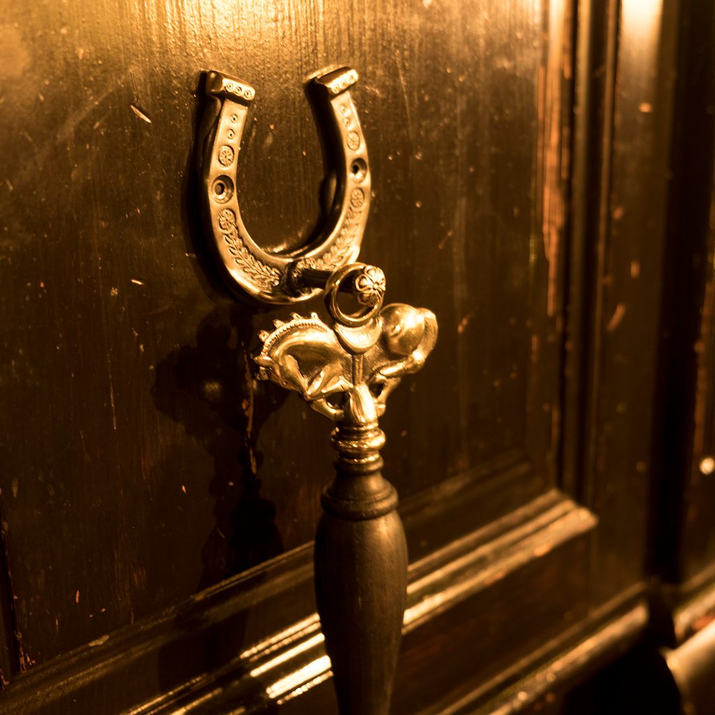 This luxurious shoe rack is an unmissable feature of the hallway - the first detail guests see when they enter the house. It combines utility with the refinement of an old castle and adds a touch of distinction to the interior. Solid brass, handcrafted workmanship and a horse and horseshoe motif create a combination of luxury, power and luck. Here, the horseshoe also serves as a hanging bracket on the wall, so that the shoehorn is always close at hand and also acts as a stylish decoration.
