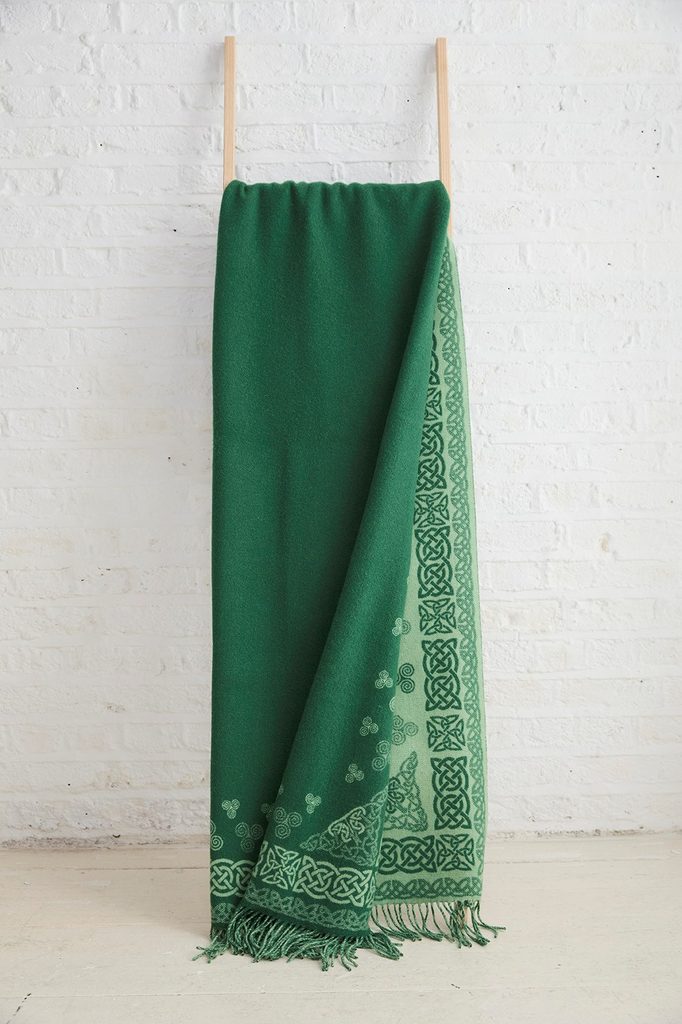 A luxurious, cosy woven blanket inspired by the traditional Aran shawls worn by generations of women living on the Aran Islands. The main element of the design is the woven patterns reflecting Celtic art, its symbols and mythology - a visual narrative through Celtic knots and spirals, paying homage to Irish heritage and folklore. These knots and spirals symbolise growth, interconnectedness, unity and eternity.