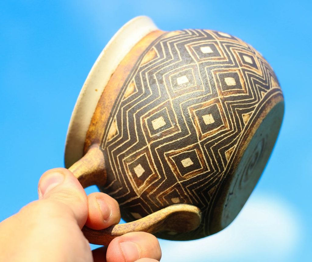 Czech hand-painted pottery - a mug. Height: 9.5 cm. Diameter: 8.5 cm.