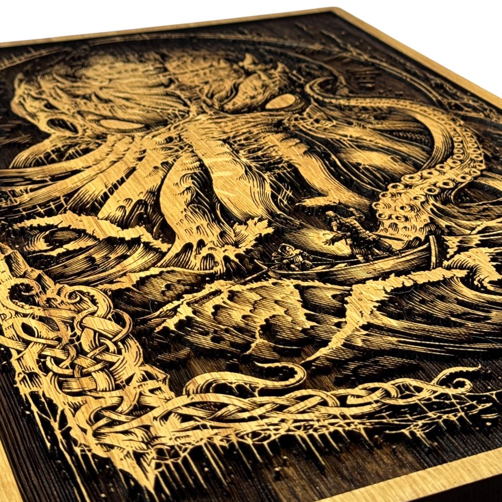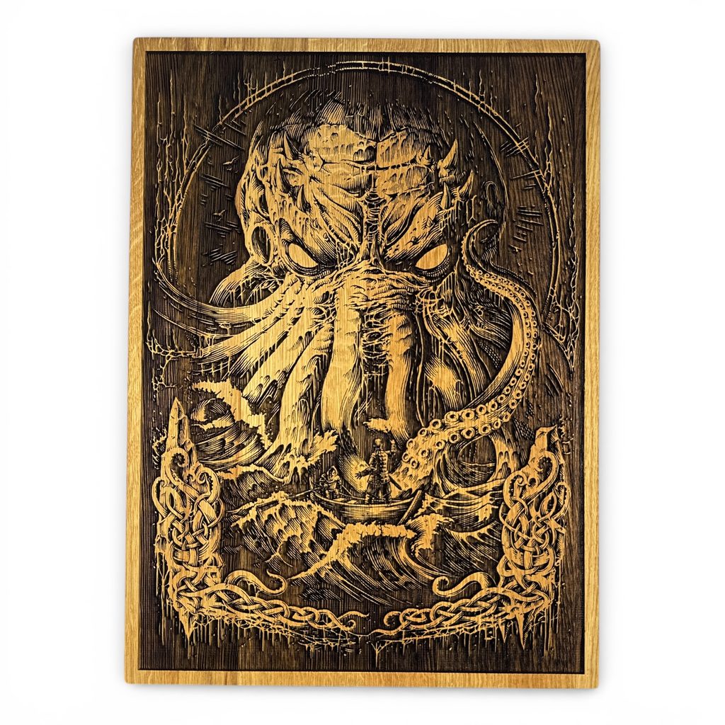 Wall decorations are burned into an oak wood. Oak leaves a beautiful texture due to the different hardness of winter and summer rings.