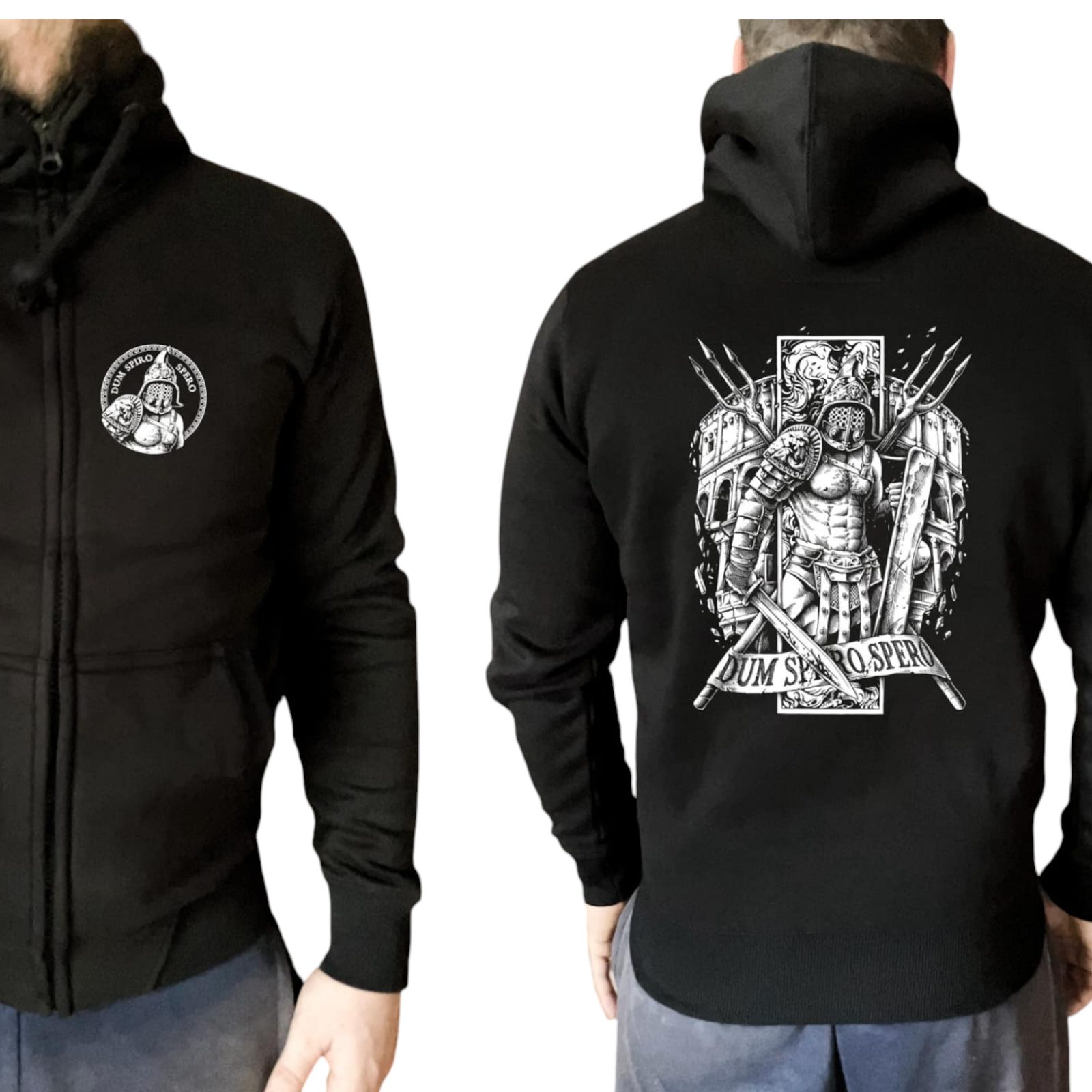 The GLADIATOR sweatshirt with the Latin inscription Dum spiro spero (As long as I breathe, I hope) is a very widespread motto. The author is believed to be Marcus Tullius Cicero. Several clans of families, such as the MacLennan, Liversidge, Doran and Partidge clans of Scotland, consider it theirs.