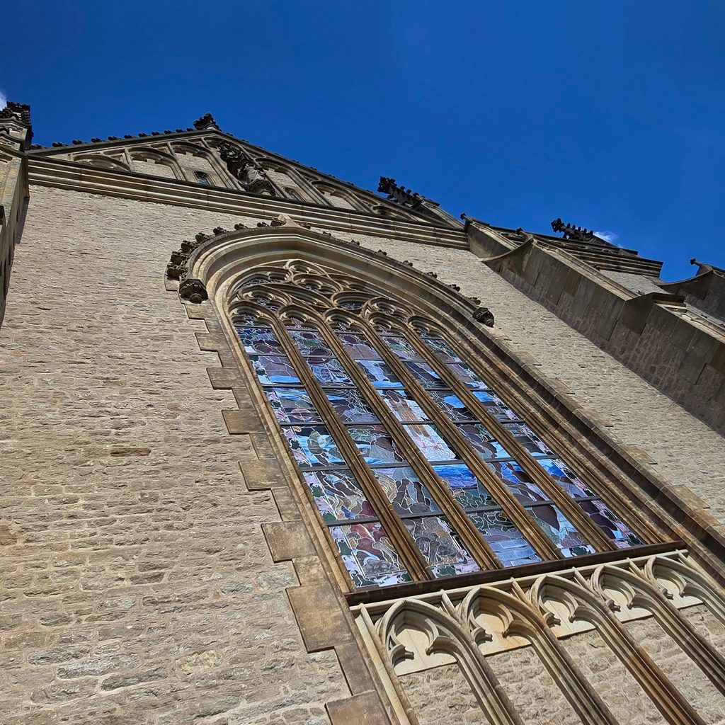 In later times - in the Middle Ages it was adopted by cathedral builders. The triskelion was used as a decorative and symbolic motif in medieval cathedrals. It appeared in stone reliefs, stained glass windows and manuscripts.