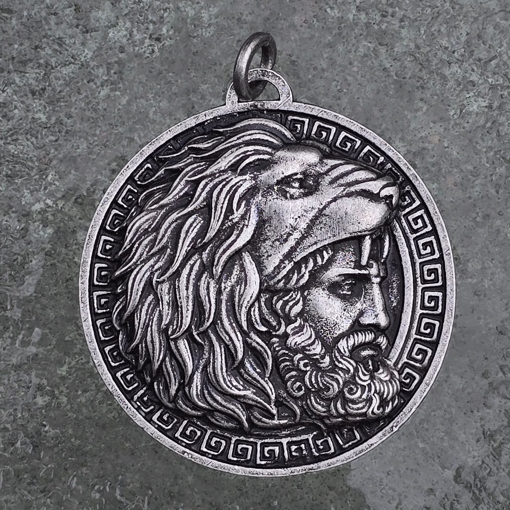 Wear this piece of jewelry on your chest, depicting the hero clad in lion skin. This talisman is also suitable as a gift for a son or as a reward for victory.