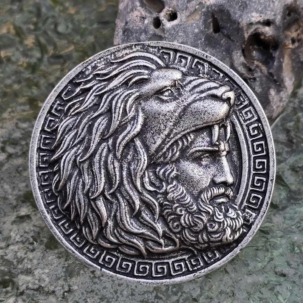The coin depicts this hero dressed in lion's hair, and is also suitable as a gift to a son or as a reward for victory.