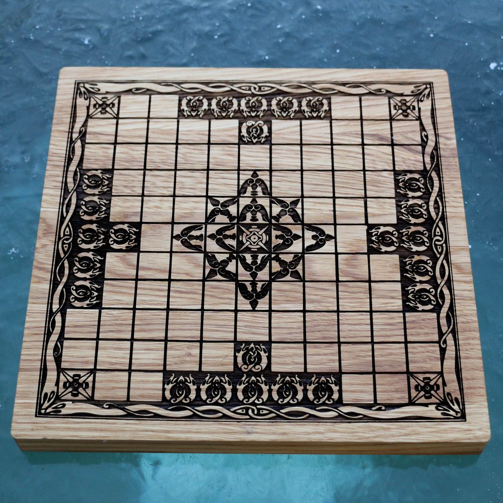 Hnefatafl (or King's Table in Old Norse) is a board game that dates back to about the 4th century. It is probably derived from the Roman game latrunculi and the Greek game petteia. The game of tafl was popular throughout northern Europe and was spread by the Vikings. Interestingly, the Sami played tablut until the 13th century. The Norse considered it a high virtue to be able to play the game.