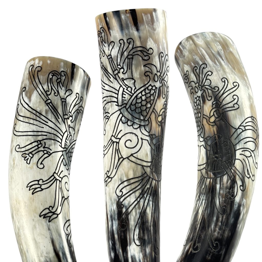 Viking Dragon Drinking Horn, polished and treated with a food safe lacquer.