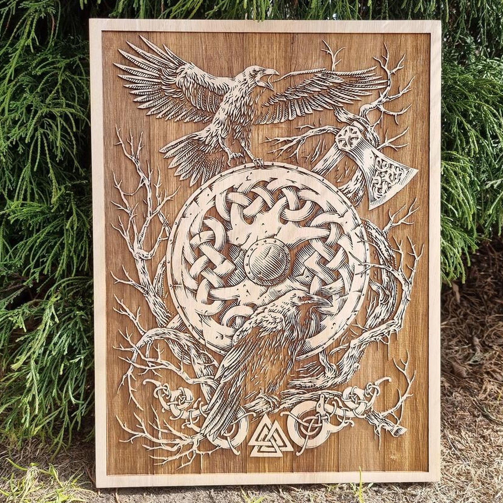 In Norse mythology, Huginn (Thought) and Muninn (Memory) are ravens that soar all over the world (Midgard), and bring information to the God Odin. Huginn and Muninn are depicted on many migration period and viking age items including golden bracelets, Vendel era helmet plates and Germanic Iron Age bird-shaped brooches. Odin’s messengers are linked to shamanic practices. In skaldic poetry fallen warriors are sometimes referred to as sacrifices to the ravens, as Odin decides who lives and who dies in battle.