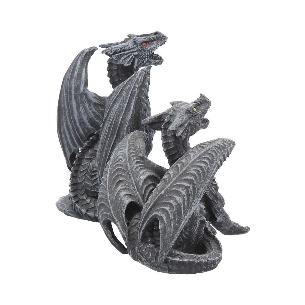 This set from gothic masters Nemesis Now is perfect for any dragon lover. One is lying on the ground, mouth open in a display of anger with yellow eyes looking up piercingly. The other sits on its hind legs, wings spread wide and red eyes looking up. Encased in high quality resin before expert hand painting, this set will make a fantastic gift for any lover of mythical animals.