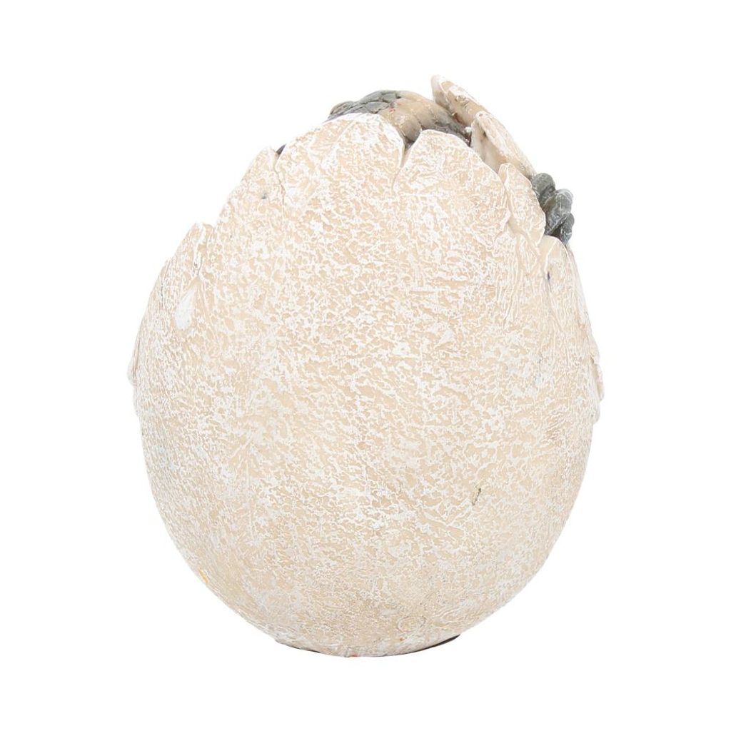 From alternative brand Nemesis Now's giftware collection, this adorable dinosaur makes a perfect addition to any coffee table. Emerging from a freshly cracked egg, this newly hatched raptor is still in a sleep state, relaxing before entering the harsh world. One small clawed hand is placed on his scaly face, while a foot clings to the cracked edge of the egg. Cast in high-quality resin before being lovingly hand-painted, this sleepy dinosaur can adorn any mantelpiece or shelf.