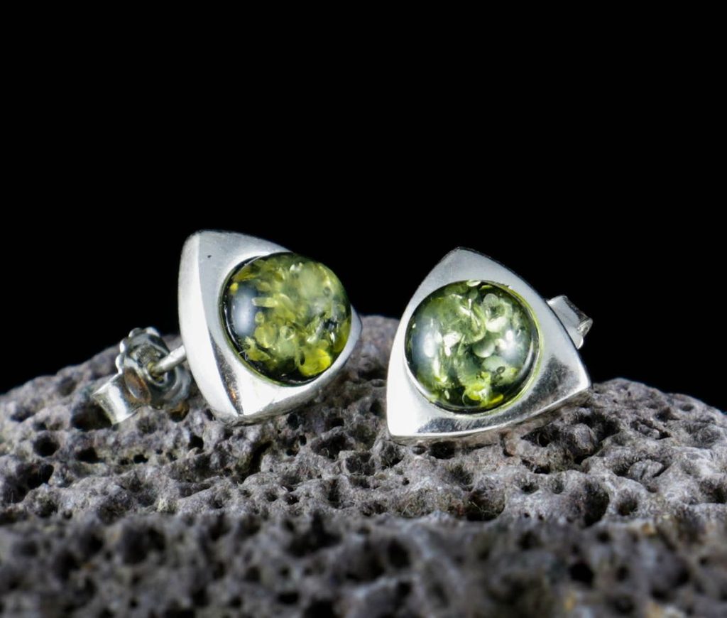 Luxurious Sterling Silver Earrings from Green Baltic Amber. Modern design and quality workmanship.