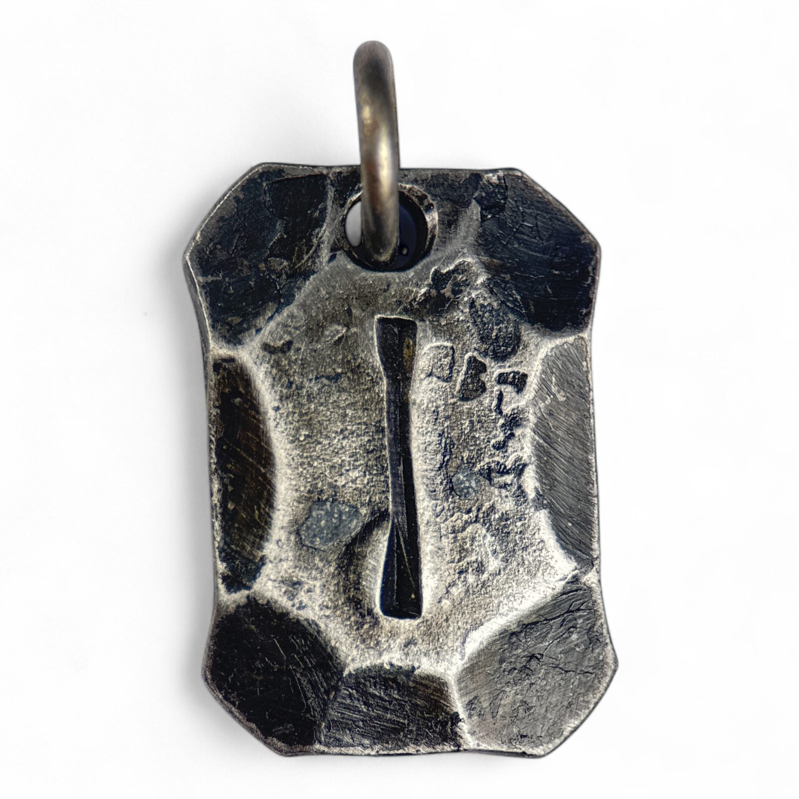 Hand forged rune talisman - born of fire and coal. Each rune pendant is an original. Isa – Literally "ice", esoteric meaning "stasis, stillness". Rune of concentration of things in a static or frozen state. Rune of stillness and the Ego-self. It governs: