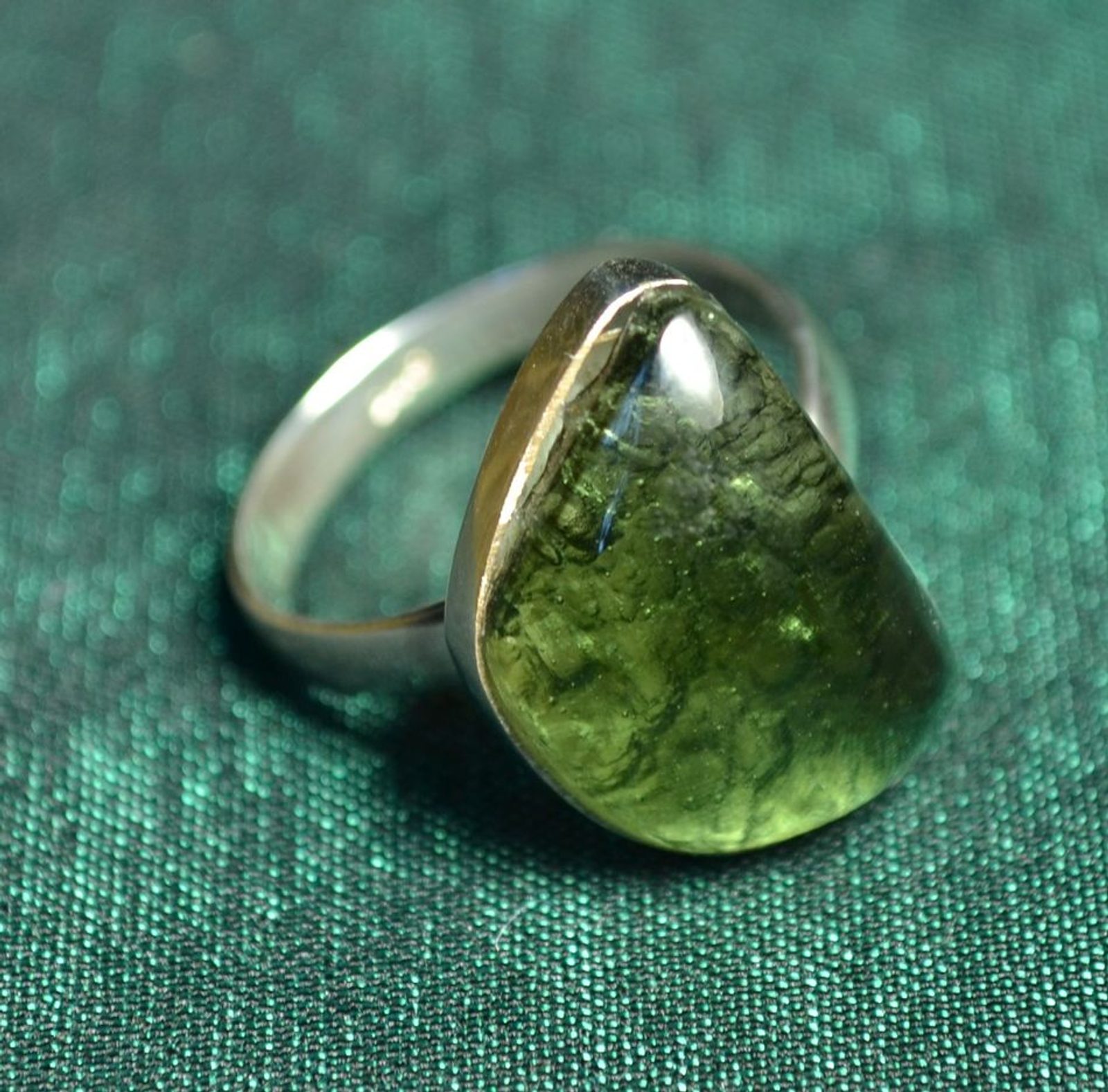 SILVER RING WITH MOLDAVITE, polished, Ag 925