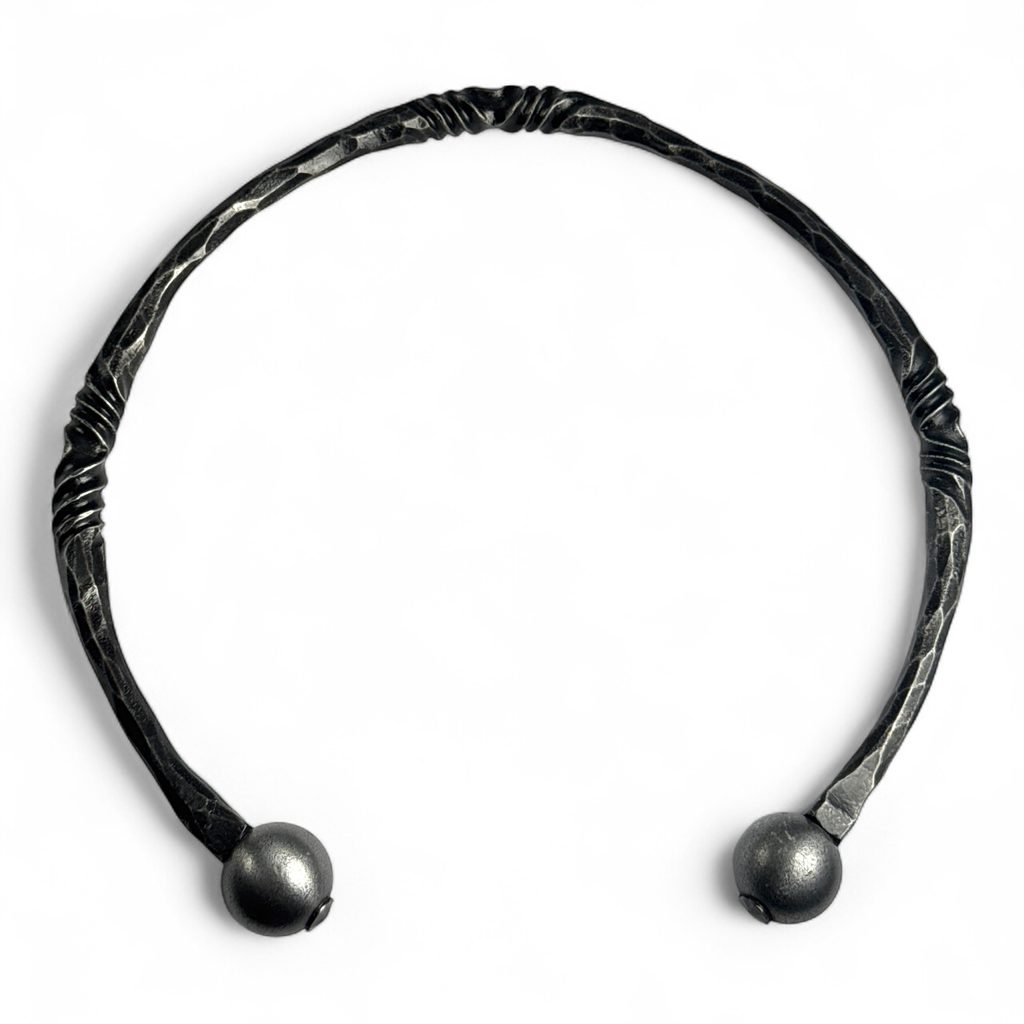 Hand Forged Torque designed for comfortable wearing. Torque (troq or torc), from Latin torques - to twist, is a common name for all rigid metal neck rings, that our ancestors had been wearing since the Bronze Age. Torcs were popular with the Romans and it is considered a typical Celtic artefact. It was a symbol of both religious and secular power, worship and protection, as torcs were worn by gods and godesses, heroes, warriors and aristocracy; it represented a high social status and importance.