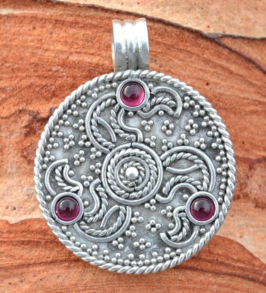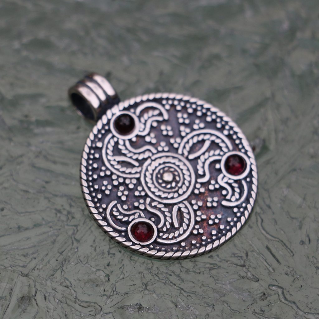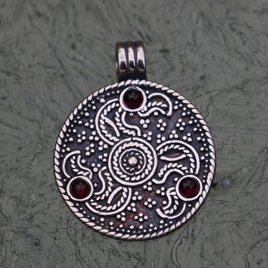 Our Eagle Triskele is a sterling silver pendant that is inspired by a find of a similar pendant from the locality of King's Field, Faversham in Kent, United Kingdom. This locality is famous for finds from the 6th and 7th Century and is an example of Anglo-Saxon craftsmanship. So, this jewel comes from the same period as King Arthur's legends. Triskele is a symbol of "three realms" - Land, Sea and Sky.