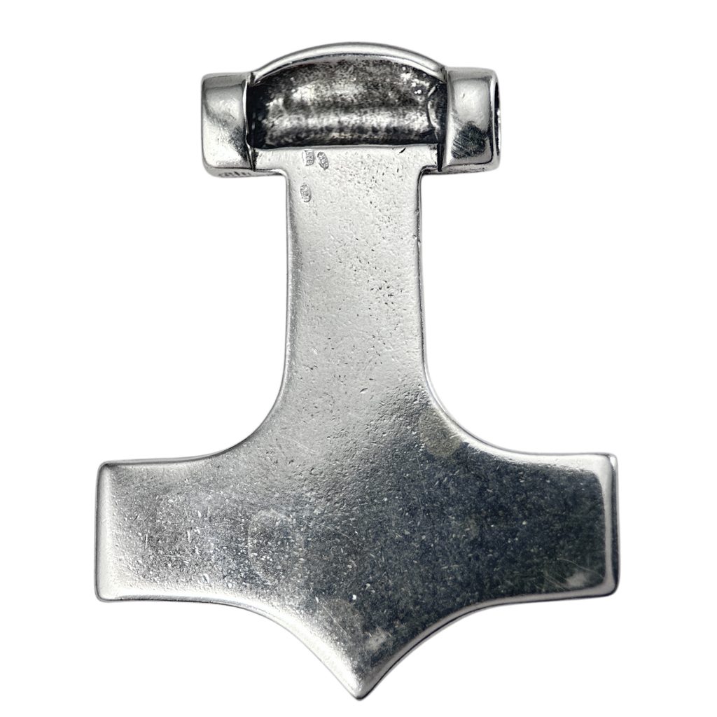 Sterling silver Thor's hammer Jokkum, features Odin's triple corner - Norse symbol of Asatru faith.