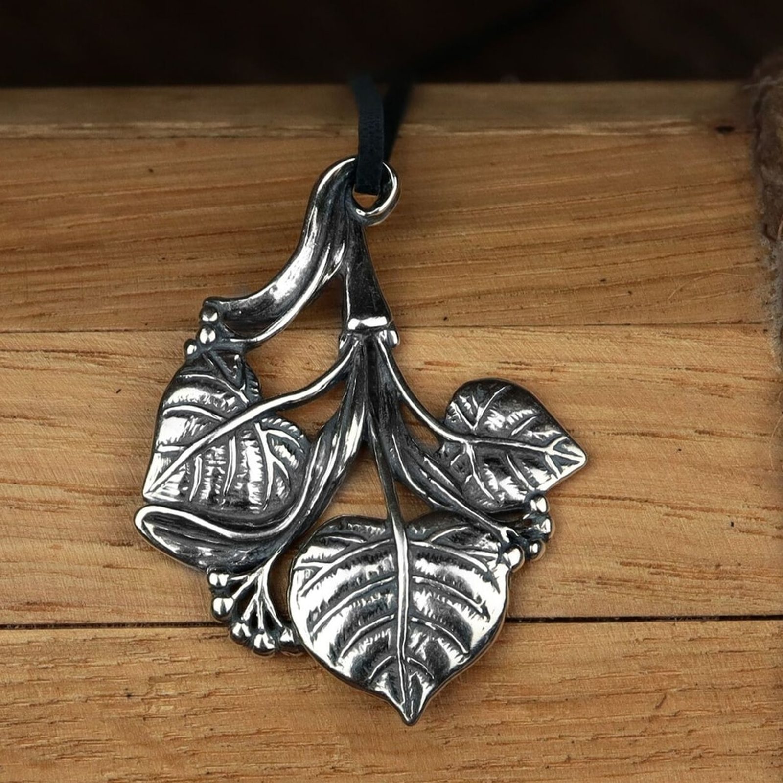 Linden tree leaves crafted as a large silver pendant, the bail is hidden. The linden tree has become an official panslavic symbol at the Panslavic gathering in Prague (2.-12. 6. 1848).