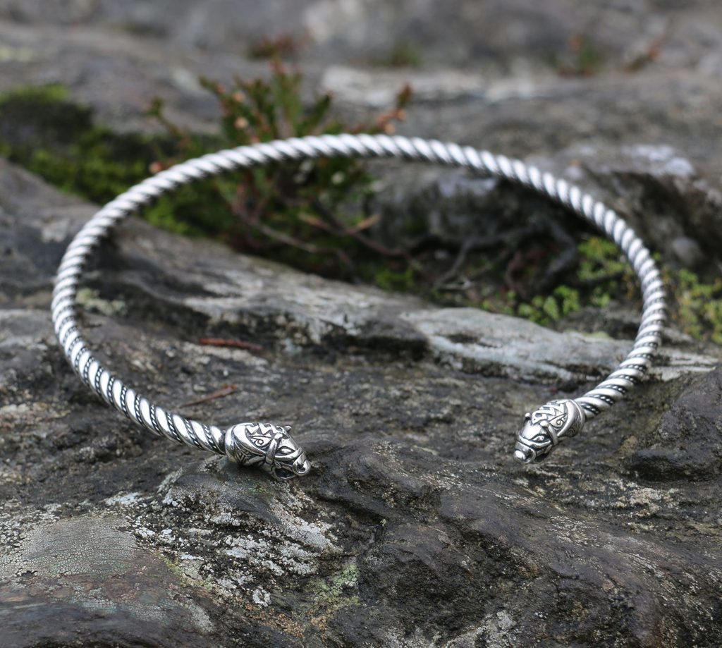Our Collector's TORC (Torques) based on a bracelet we designed at the instigation of the History Channel for the cast and the crew of the VIKINGS SERIES. The torc is twisted from brass wires, the beast head cast using lost wax casting method, soldered together, all hand polished.