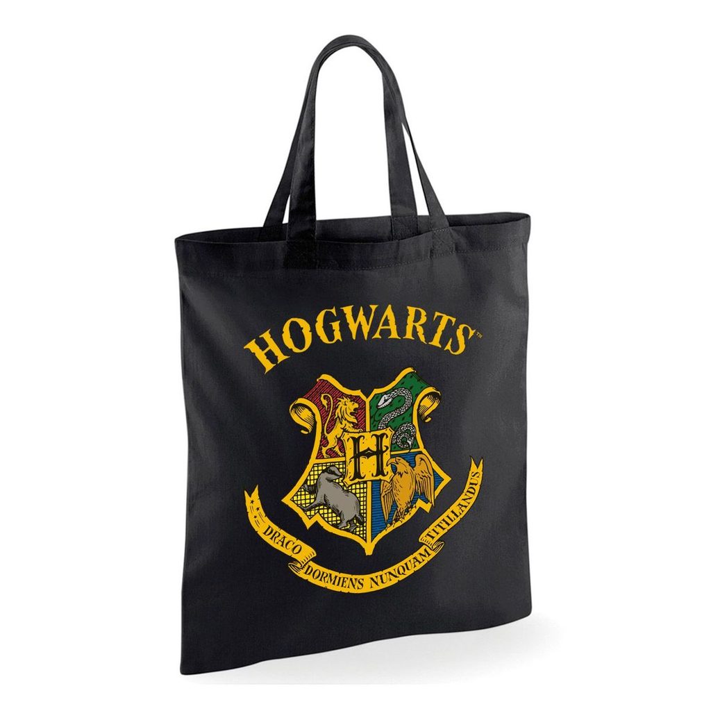 Harry Potter - Hogwarts, black tote bag with the school crest and the school motto "Draco dormiens nunquam titillandus", "Never tickle a sleeping dragon". A useful piece of advice.