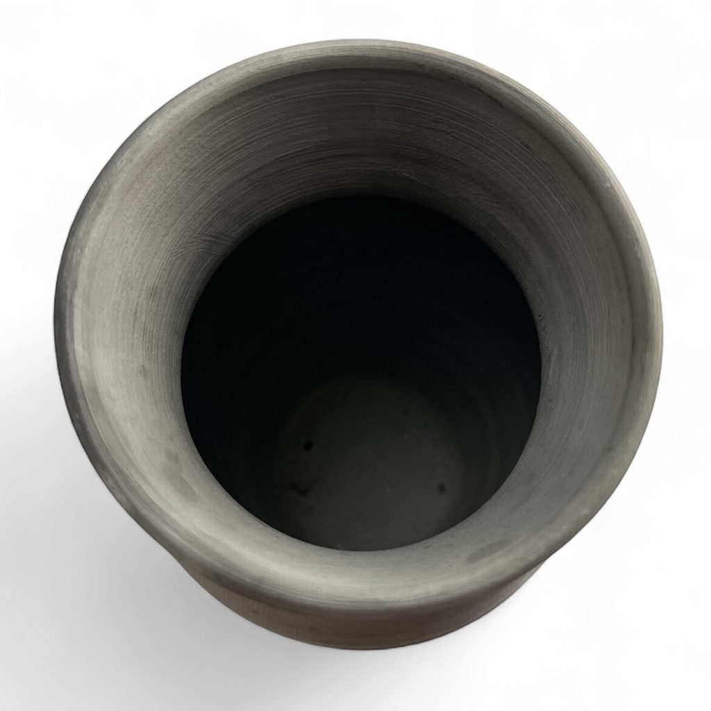 During production, the vessels were fired in an environment with limited access to oxygen, which led to soot and other fumes from the smoke being deposited in the ceramic material. This smoking process caused the pottery to darken in colour - from brown to black - and the surface acquired the typical smoky stains and sometimes a dull or glossy appearance.