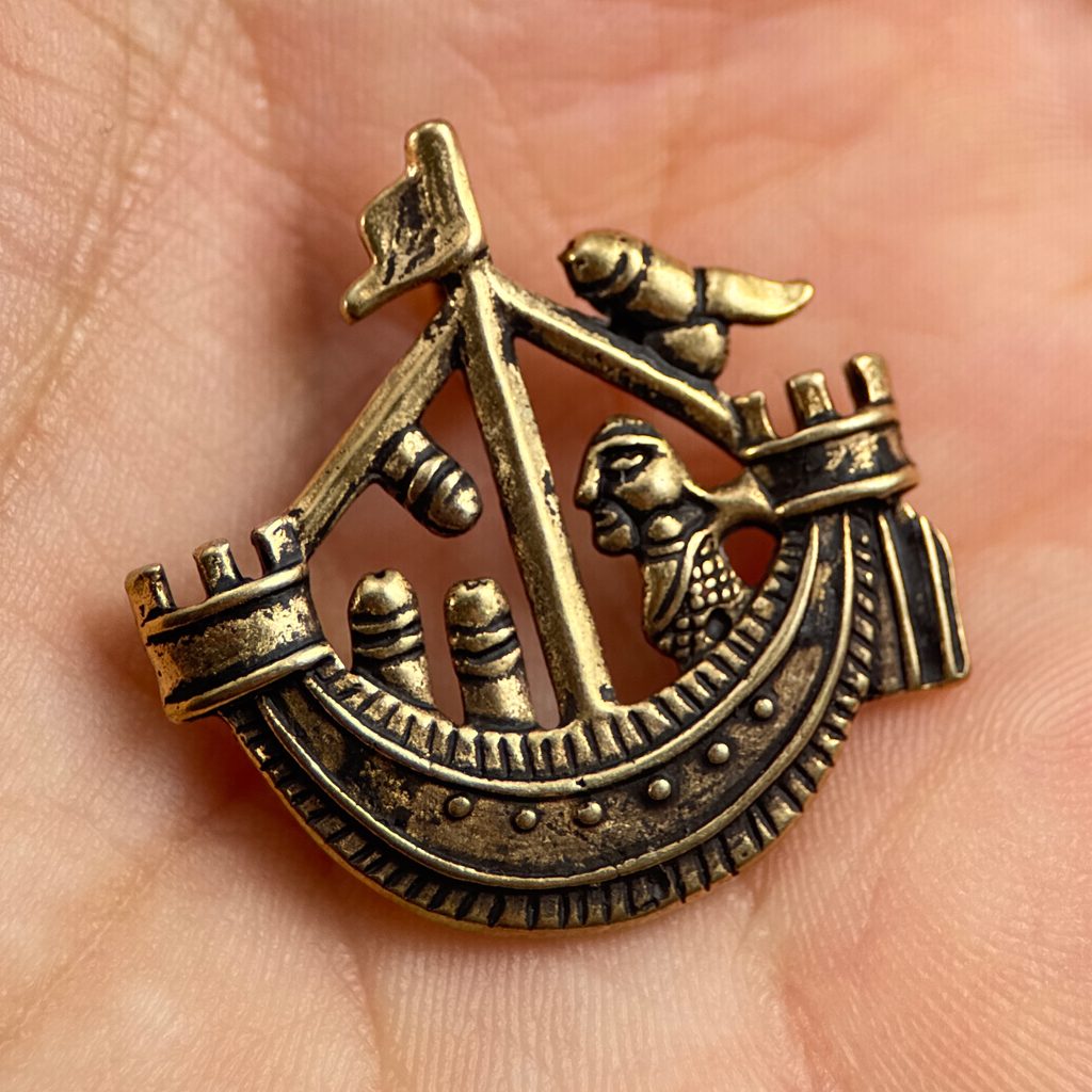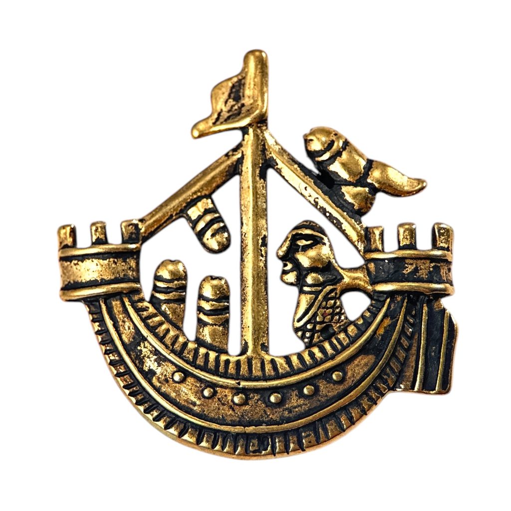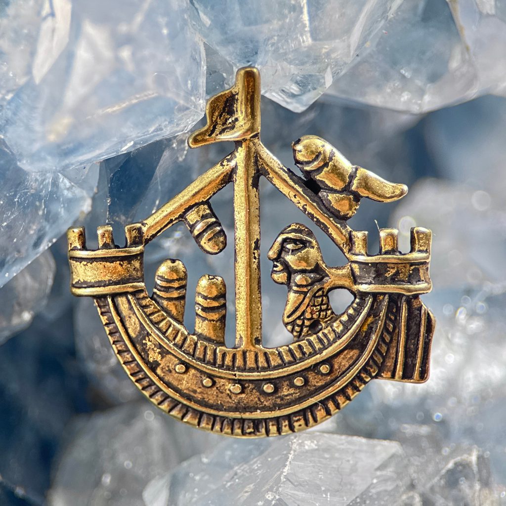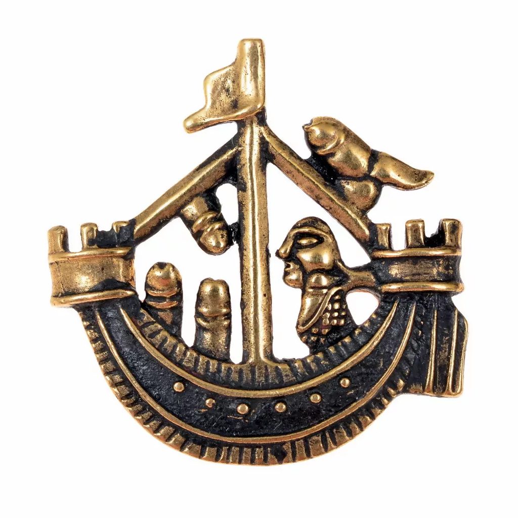 This medieval pendant in the shape of a ship with a halyard was created from a historical model from 1350 to 1425 AD and is now in the Langbroek Collection, Van Breuningen.