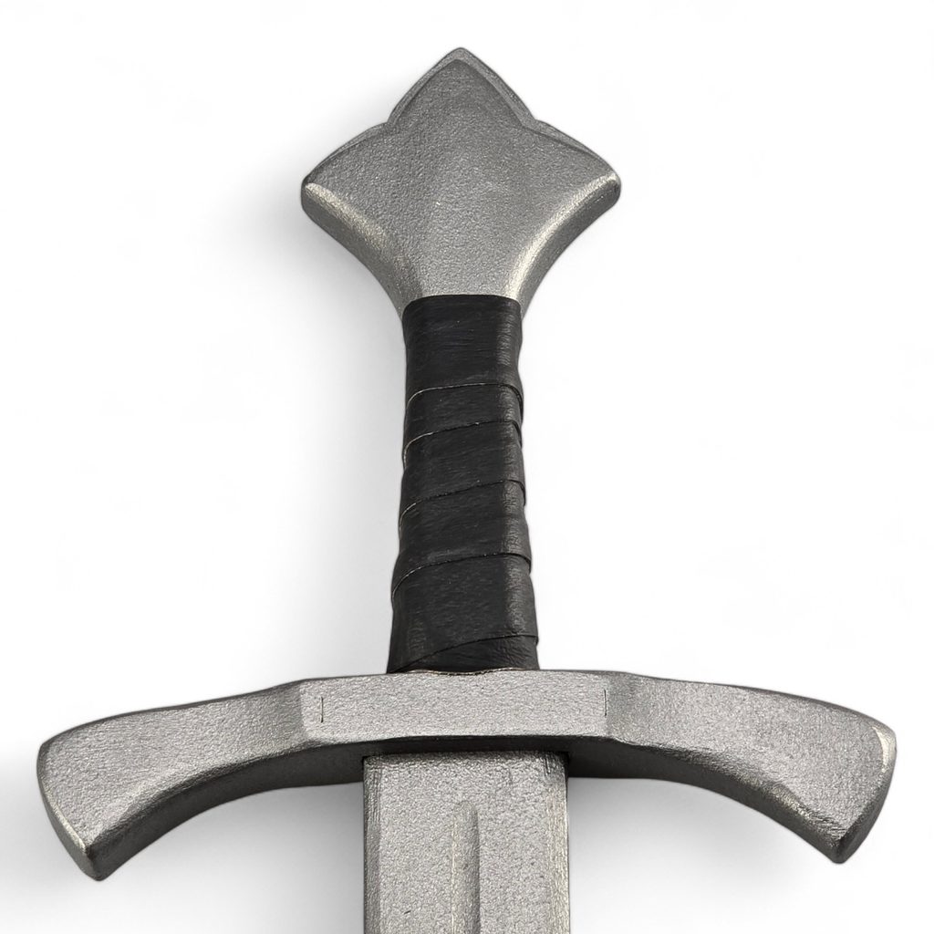 The whole sword is made of beech plywood and coated with a mixture of colours imitating the appearance of metal. The blade of the sword is 6mm thick and 52mm wide, length 70 cm.