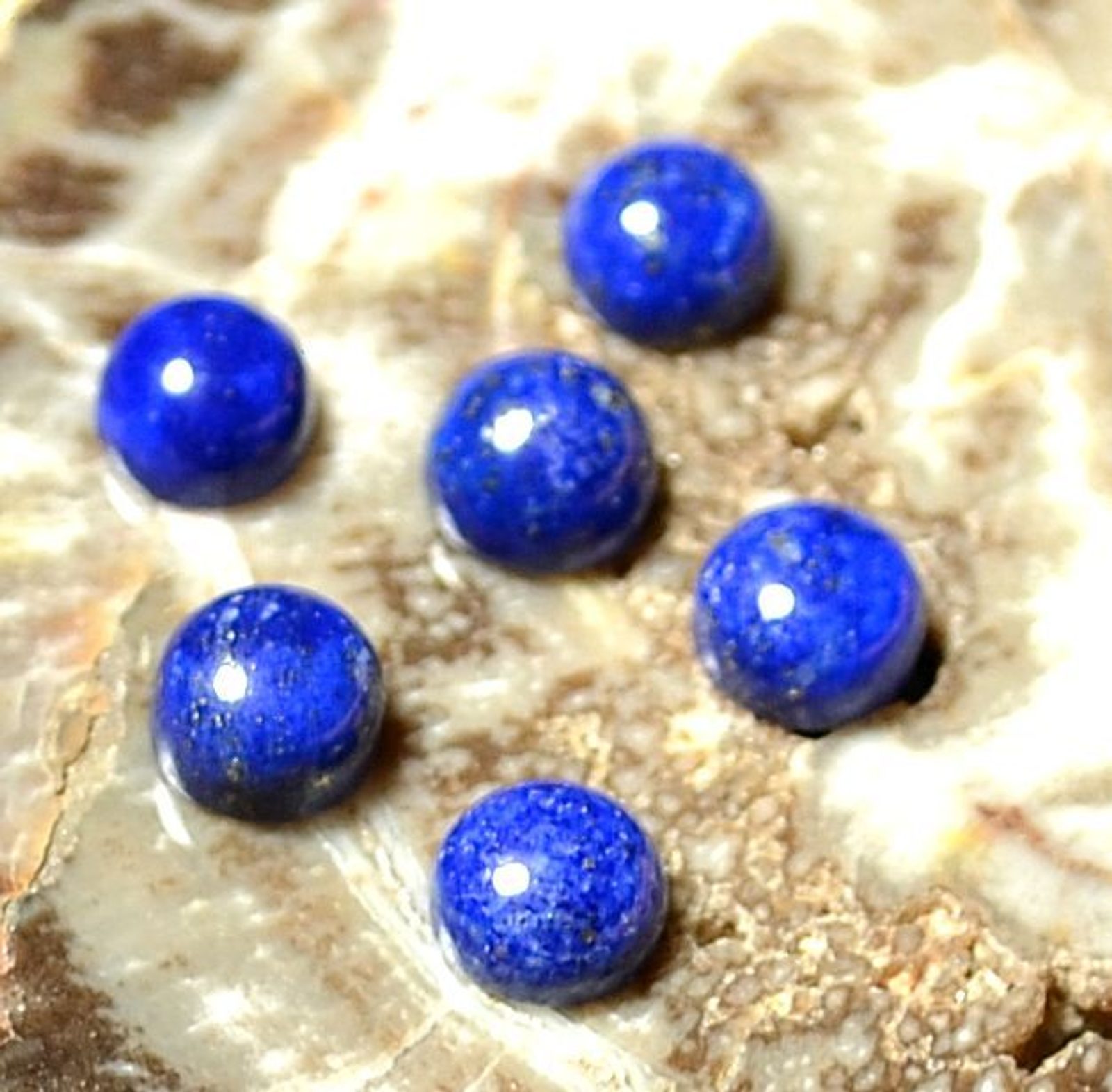 Lapis lazuli, cabochon gemstone. Size: 5 mm in diameter. We also offer wholesale lots.