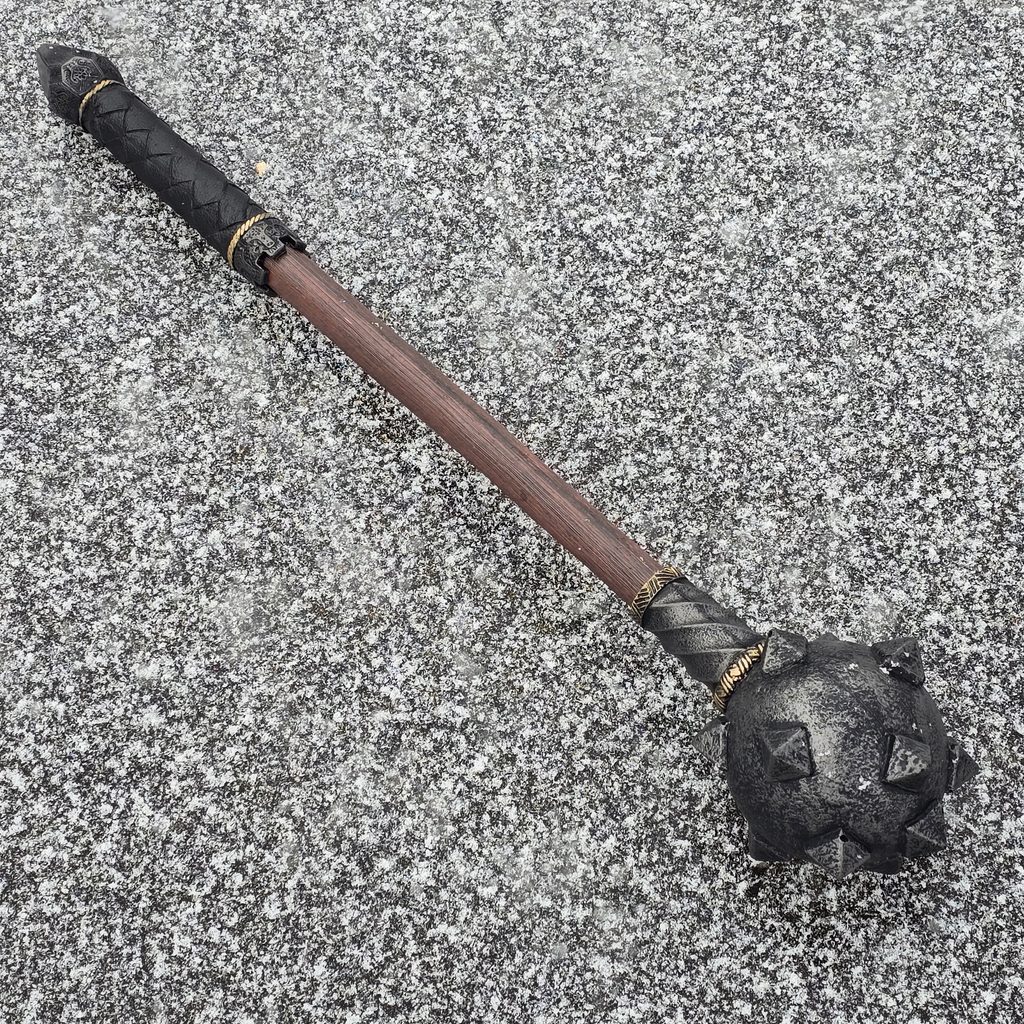 The long-awaited morning star was designed to mimic its historical predecessors as closely as possible. The wood-look handle ends with a leather-textured grip and steel pommel. The head of the weapon is hollowed out to make it safe for LARP duels, and the Calimacil foam that the weapon is made of ensures that it will last through years of adventure.