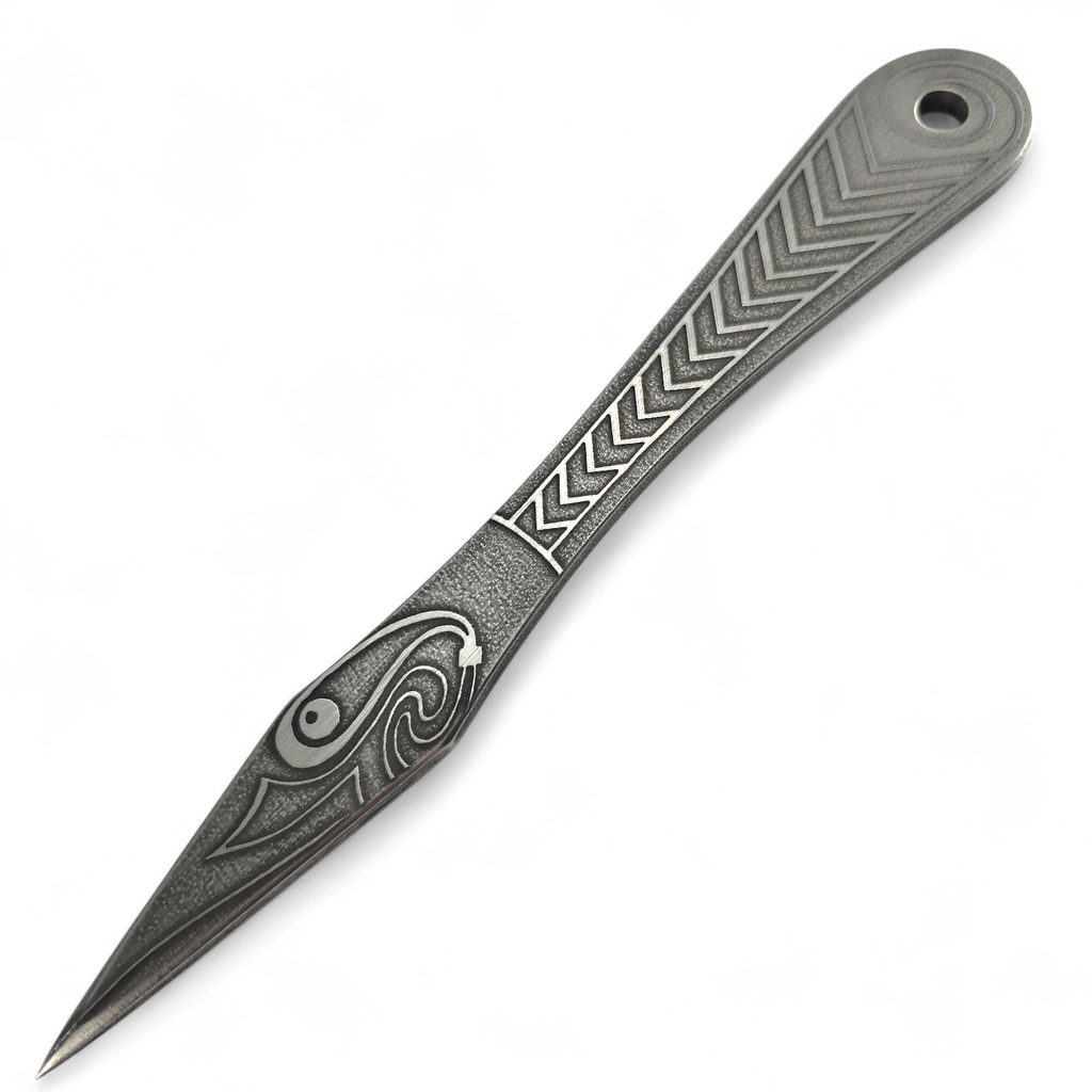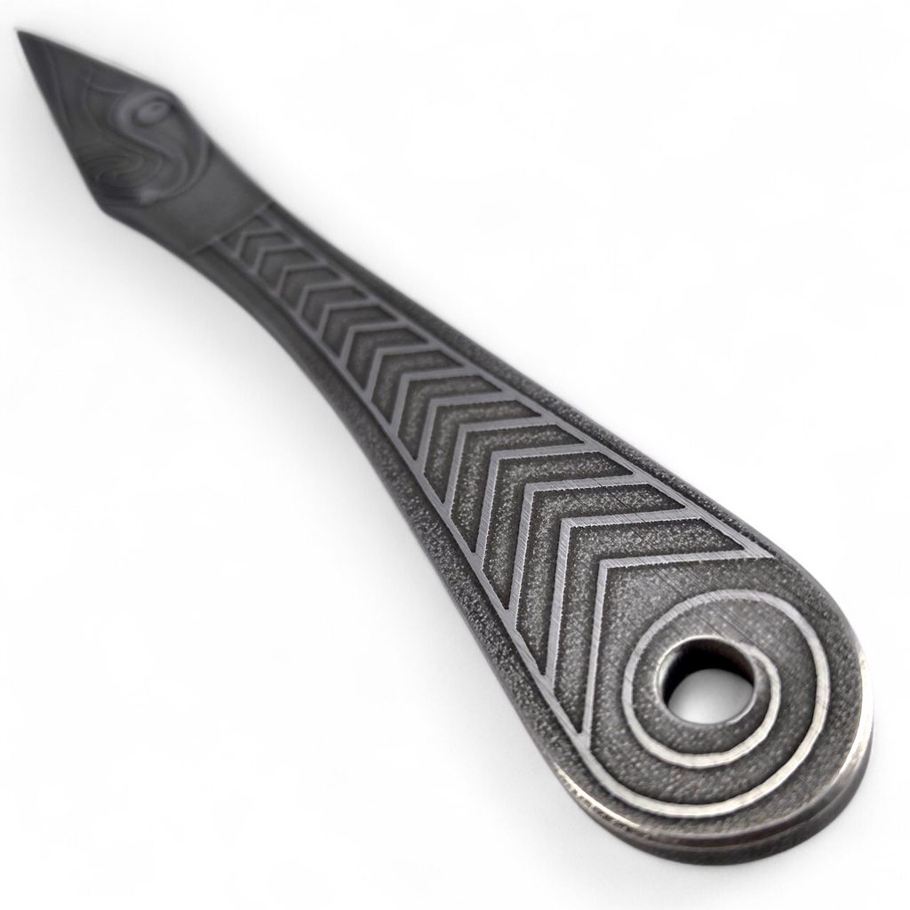 It can be expected that we would reflect a bit of mythology in our products - in this case, Viking mythology. Huginn and Muninn are two ravens who sit on the shoulders of God Odin, leaving their God in the morning and returning at dusk bringing to him the news they saw in Midgard. Their names mean Thought and Memory. This throwing knife is dedicated to Muninn - memory, so it flies as well as it is accurate