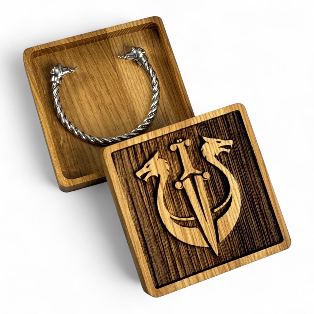 Are you looking for an original and luxurious box for our jewelry? Try this wooden one with our logo. The box also smells nice because it is infused with orange oil.
