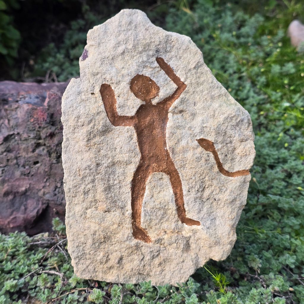 Petroglyph - hand-engraved motifs in sandstone, inspired by rock engravings hundreds or thousands of years old. Depictions of ancient cultures, people, symbols and animals.