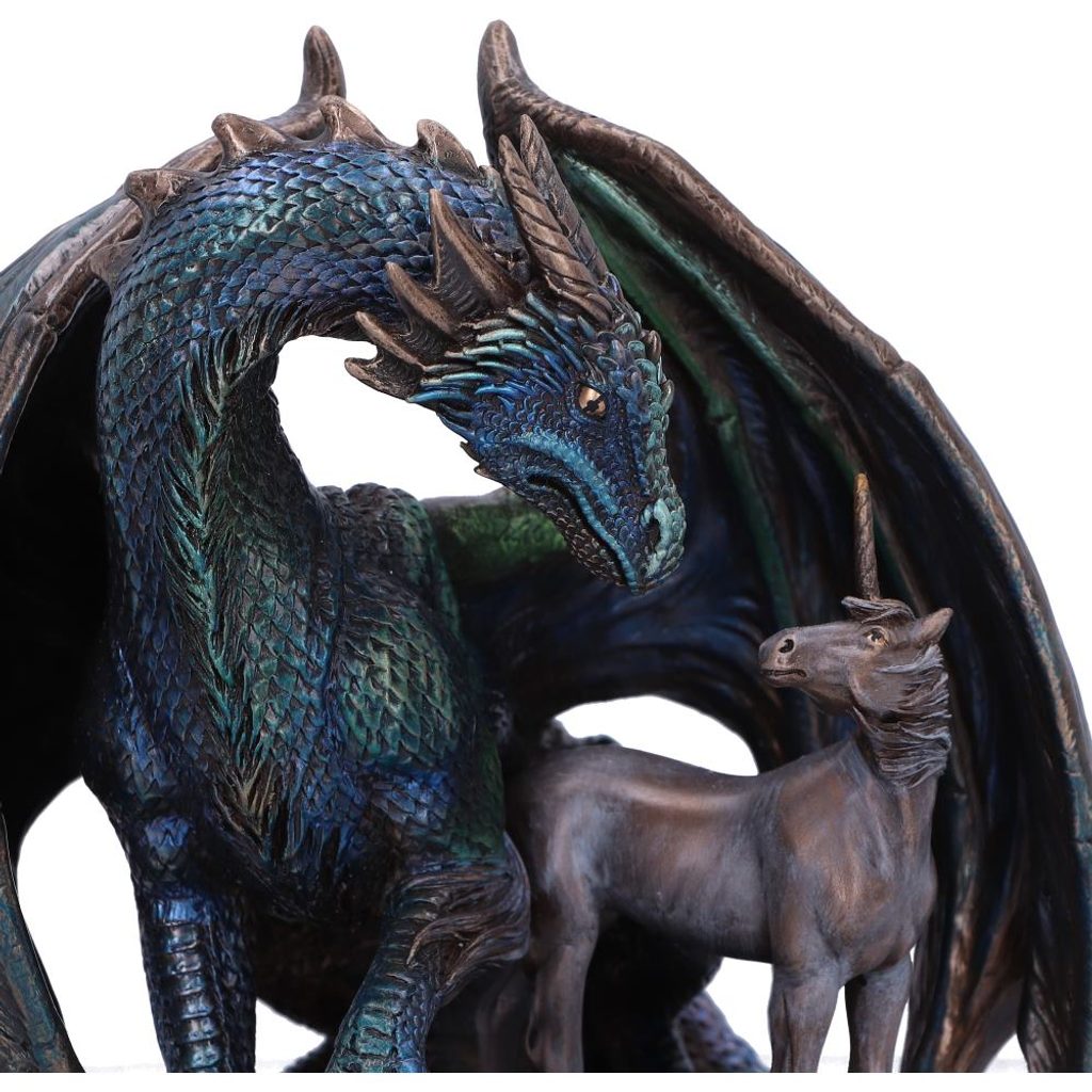 The decorative figure of the Protector of Magic is inspired by the fantasy world. It depicts a dragon, who with his body and wings protects a unicorn carrying the last piece of magic. The motif is based on a drawing by British artist Lisa Parker and works with the symbolism of protection, trust and calm strength found in the legends of dragons and magical creatures.