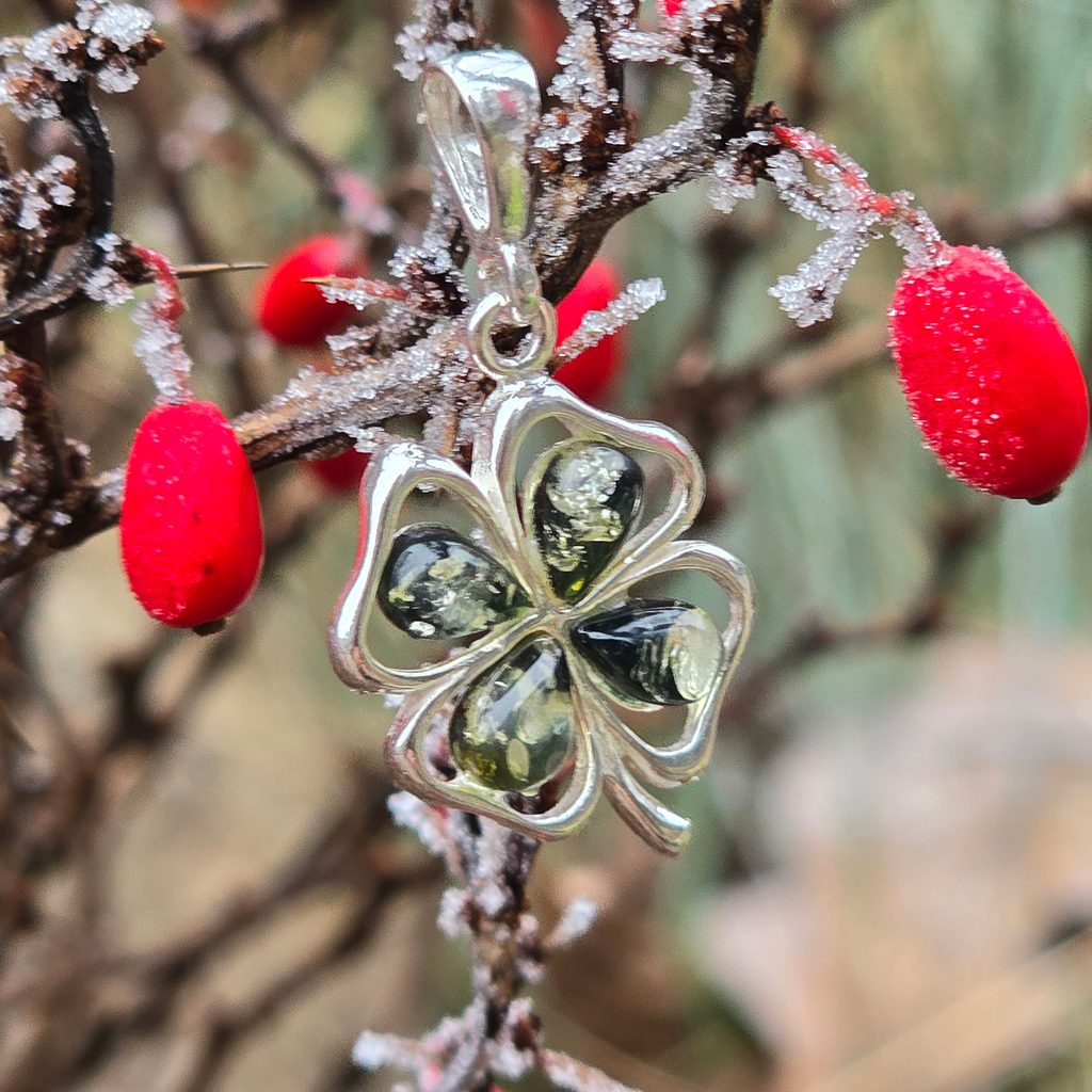 The four-leaf clover, a symbol of happiness and prosperity, is a popular motif in jewellery. The silver pendant made of high quality silver Ag 925 in combination with green Baltic amber from Poland is a perfect combination of elegance and symbolism. Each petal of the four-leaf clover has its own meaning: faith, hope, love and happiness. It brings positive energy and protection. Green amber, known for its rarity and exquisite shine, adds natural beauty to the jewellery. Ideal as a gift for a loved one or a good luck charm. The Baltic amber quatrefoil is a symbol that will never go out of style.