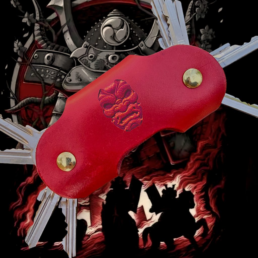 SAMURAI, leather key ring with screws, red