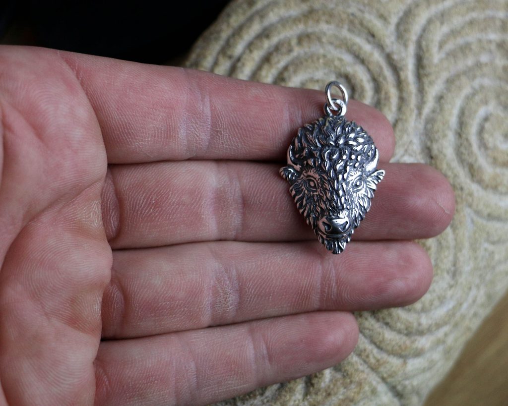 Large Bison head pendant. Among many Native American tribes, especially the Plains Indians, the bison is considered a sacred animal and religious symbol. The motif of this talisman was hand-engraved in wax.