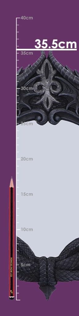Odhalte dotek prastaré temnoty s The Reflector, výrazným gotickým dračím zrcadlem, které promění každý prostor v svět temné fantasy. Tento působivý kus má uprostřed zrcadlovou plochu, kterou obklopují dva detailně vyřezávaní draci. Jejich šupinatá těla se proplétají a hlavy směřují ven, což dodává stěně temnou eleganci. Dračí ocasy se stáčejí a společně vytvářejí uzavřený, výrazný rám.