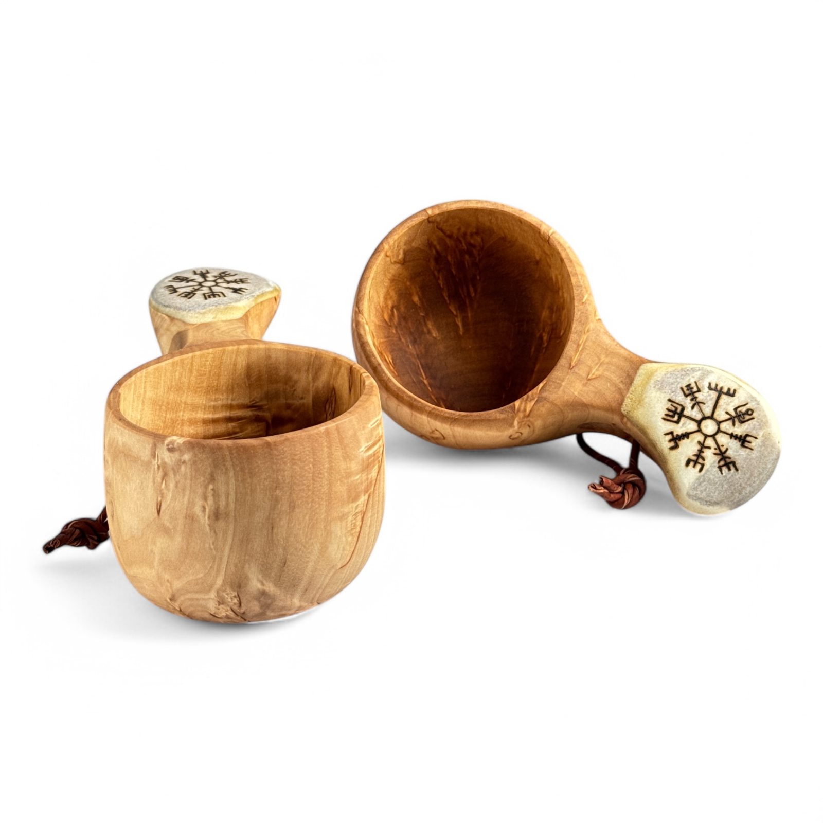 Original Finnish Kuksa  - Birch Burl (Bur) Cup. For centuries the beautifully figured birch burl kuksa has been the drinking vessel of the Sámi people. Kuksa is made from Finnish birch and has better insulating properties than porcelain. Can be used for hot or cold drinks, soups, and stews.
