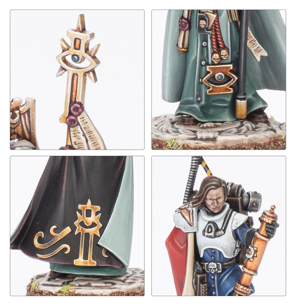 The miniatures in this box offer a degree of customisation. Astropath Dainal Kornelius has a choice of two heads – one with his visor up and one with it down.