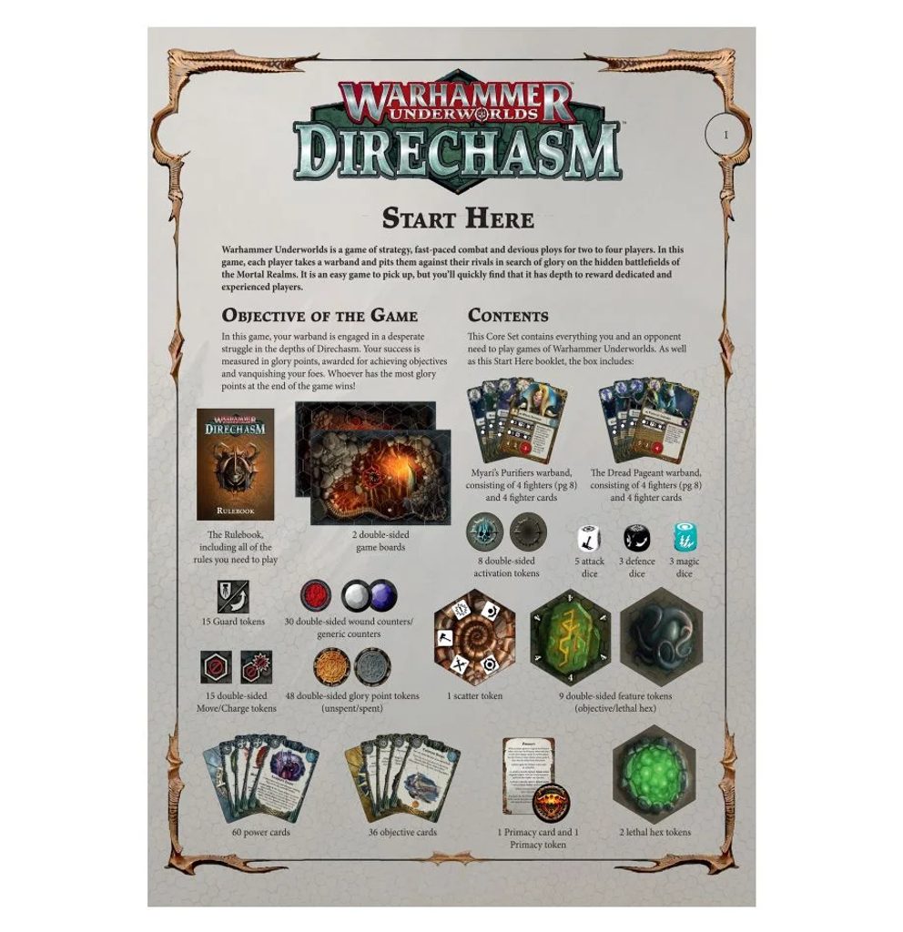 Enter the ultimate competitive miniatures game with the Warhammer Underworlds: DIrechasm core set. Inside, you'll find everything you need to start gaming in the depths of the part of Beastgrave known as Direchasm, with dice, models, cards and more.