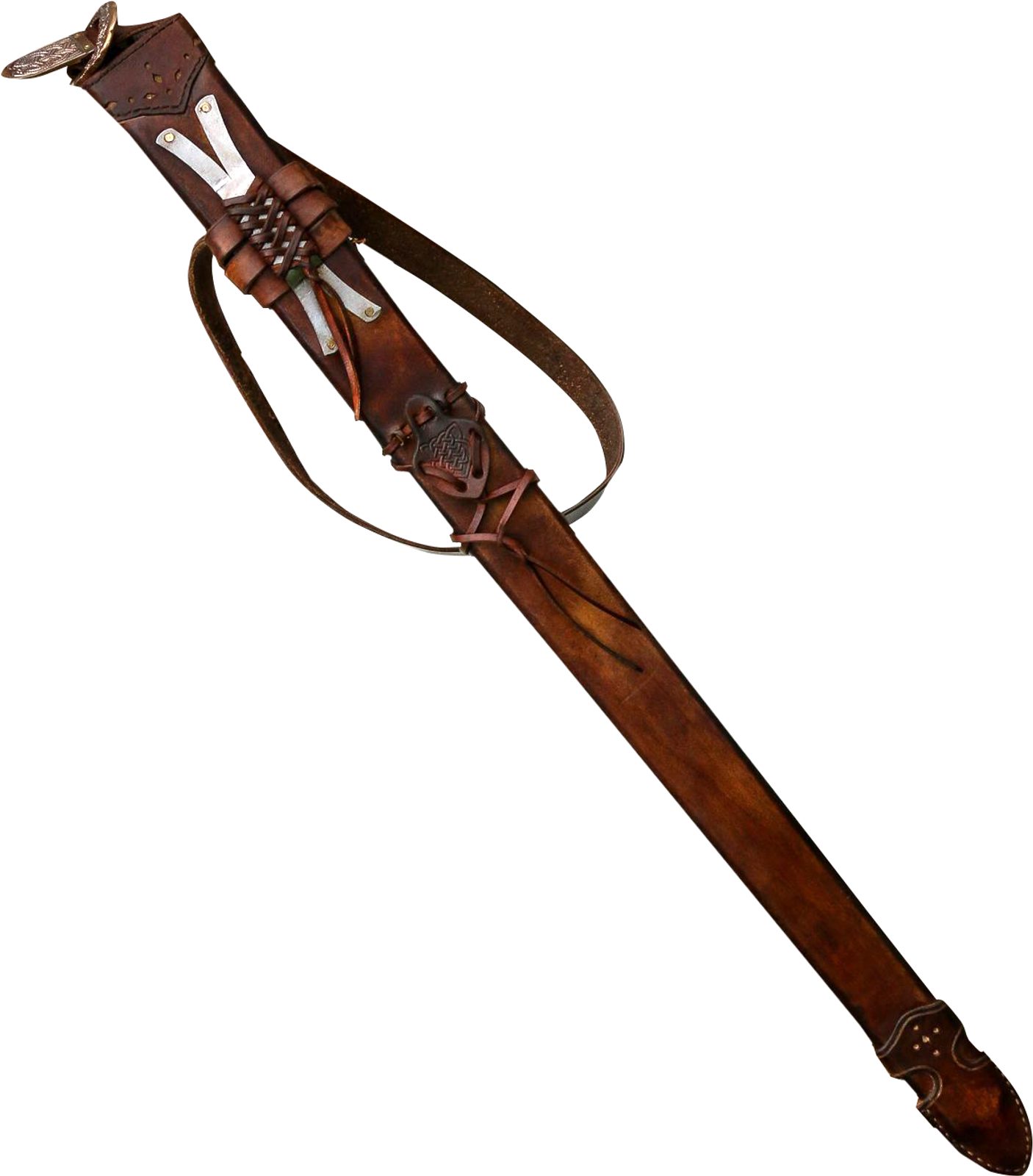 Leather scabbards for swords and accessories for your cold weapons. Leather scabbards including those made for rapiers are available to purchase with our weapons, or we can craft custom made scabbards for your own sword. Do not forget to take care of all those metal parts: you can buy the right oil here as well. Do visit this category. A sword without a scabbard is like a woman without her clothes :) Please let us know these measurements of your sword, sabre or rapier to make a custom made scabbard.