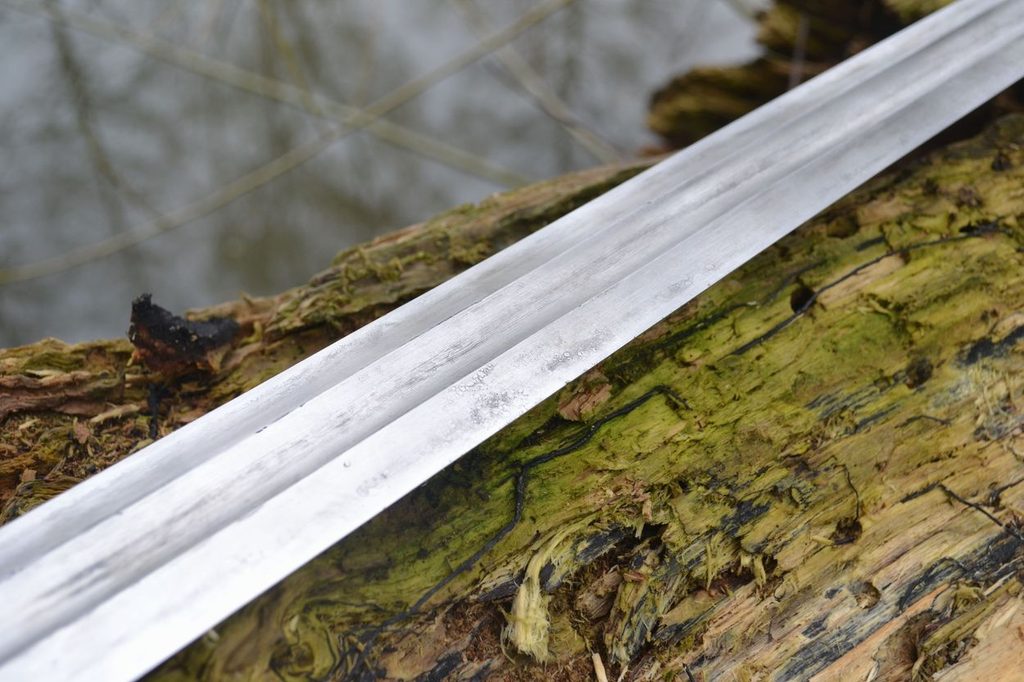 Viking Sword - Ireland, Ballinderry. Overall size: 92 cm, length of a blade: 76, with of blade 4.7 cm, width of a guard 10 cm, point of balance approx 13 cm below the guard, weight: 1,52 kg.