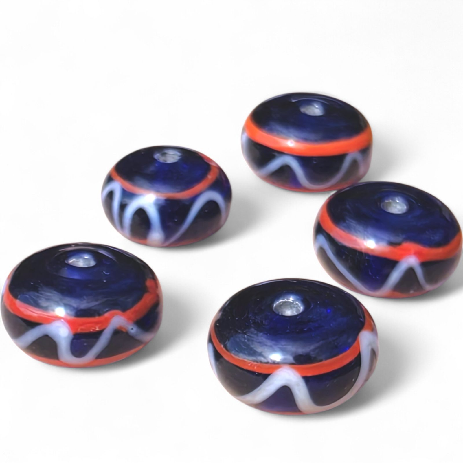 The production involves winding molten glass onto a metal rod, allowing a wide variety of shapes, colors, and decorations. These glass beads are still used today in jewelry making, especially for necklaces and bracelets. Each piece is a unique original continuing a thousand-year-old craft tradition.